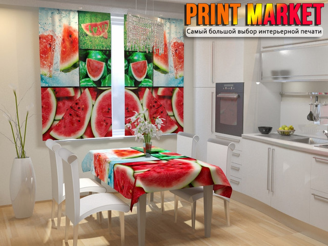 Переваги замовлення фотоштор для кухні 3д кавун в інтернет магазині Print-Market