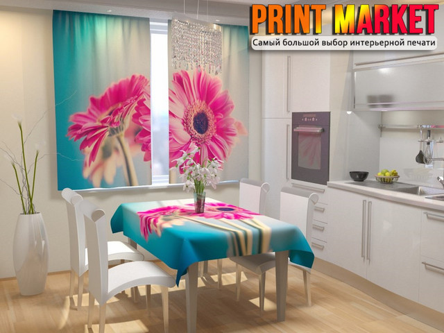 Переваги замовлення фотоштор для кухні ранок з герберами в інтернет магазині Print-Market
