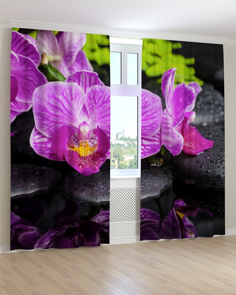 Переваги замовлення фотоштор орхідея на чорному камені в інтернет магазині Print-Market