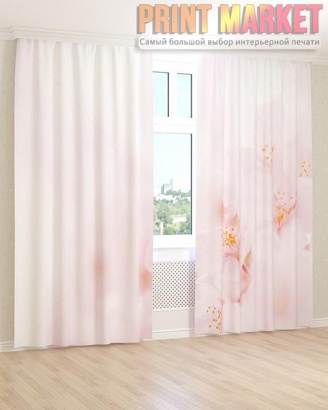 Фото штори квіти на ніжно-рожевому тлі